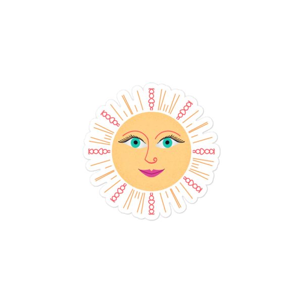 This Arizona sun sticker features a smiling face with turquoise eyes and hand-drawn ray patterns in orange and pink. The expression captures the optimism you have about the sun in October versus the wary respect you develop by mid-August when it’s actively trying to kill you.