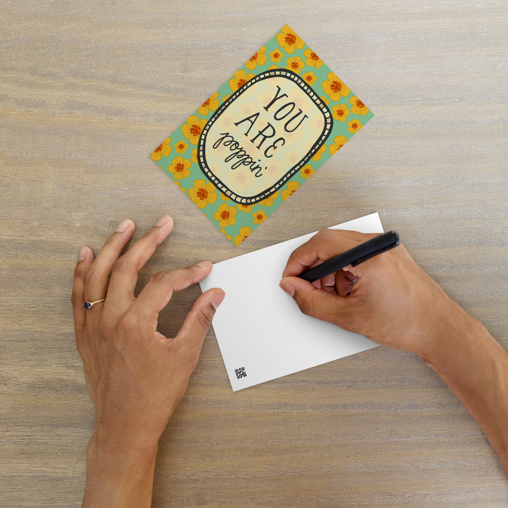 Golden poppies cover this Arizona wildflower postcard because someone you know deserves to hear that they’re doing great. And regular encouragement cards use stock photos of sunsets over generic mountains (which is soooo not the same energy).