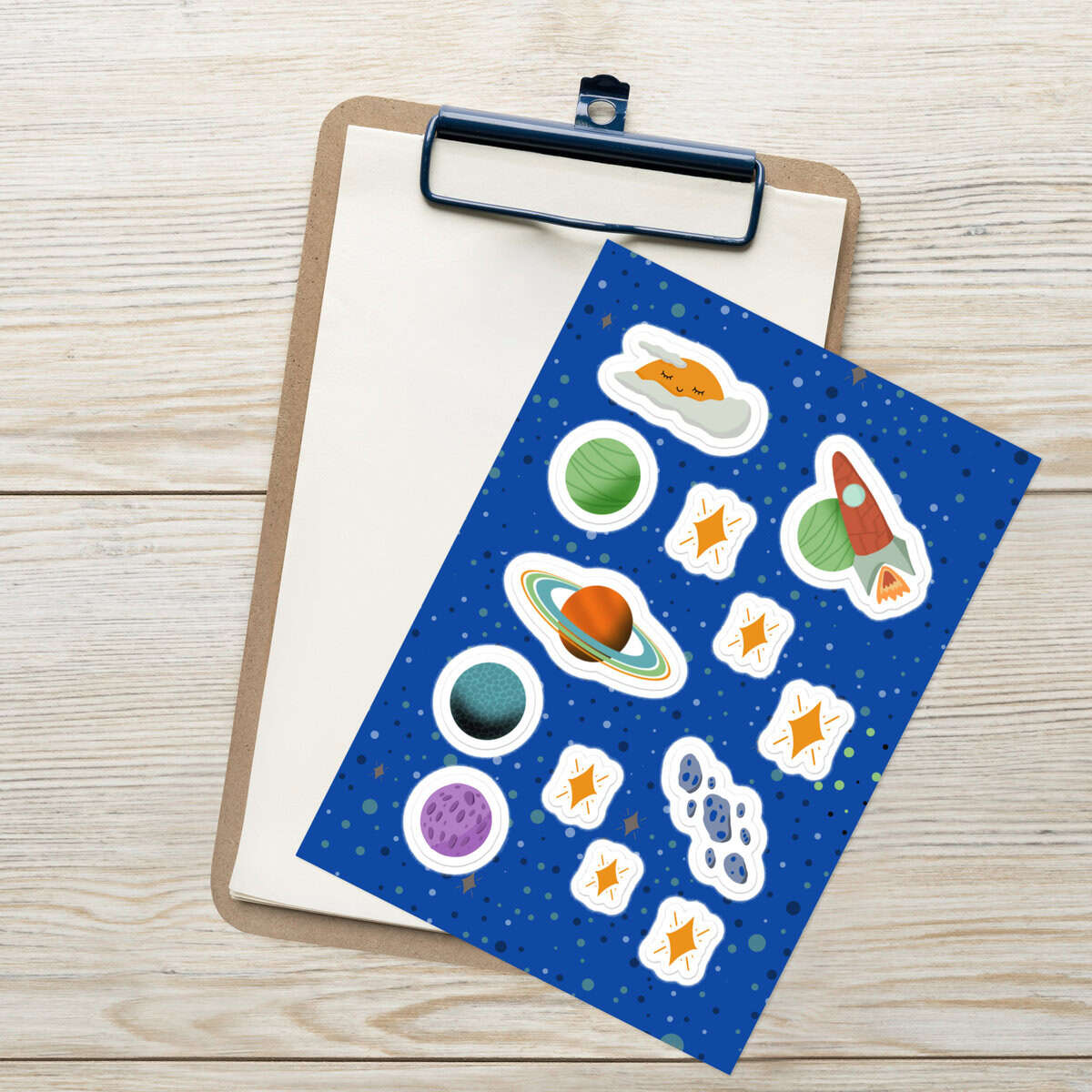 Each cute space sticker sheet comes with glossy kiss-cut stickers that peel off easily and stick to laptops, water bottles, journals, phone cases, or any surface that could use some celestial energy. The glossy finish keeps colors vibrant and the stickers durable enough for everyday use.