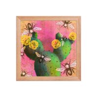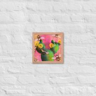 Prickly Pear Cactus Framed Art Print | Bee and Cactus Collage Wall Art