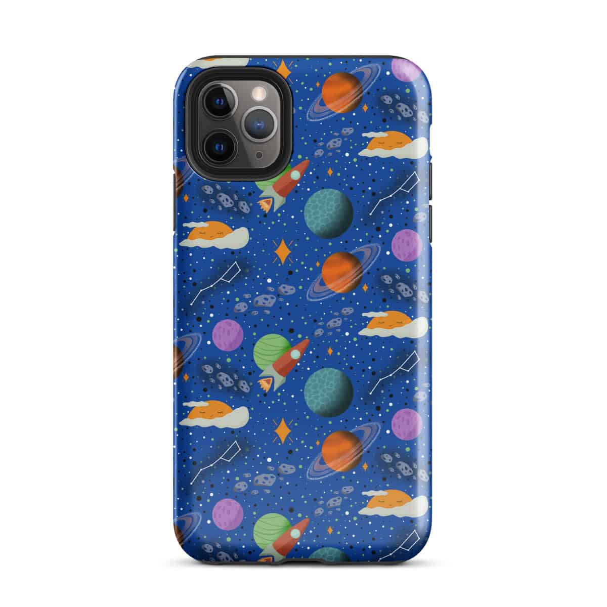 Carry a little piece of the night sky with you. This space-themed iPhone case features colorful planets, retro rockets, and sleepy suns tucked into clouds, inspired by stargazing nights in southern Arizona.